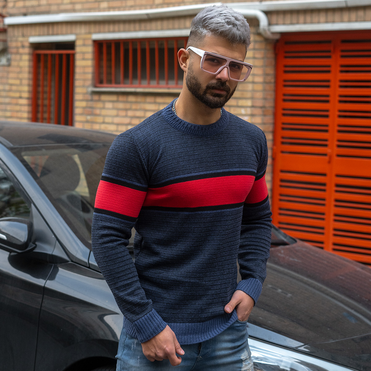 پلیور مردانه قرمز- سرمه ای مدل Madis