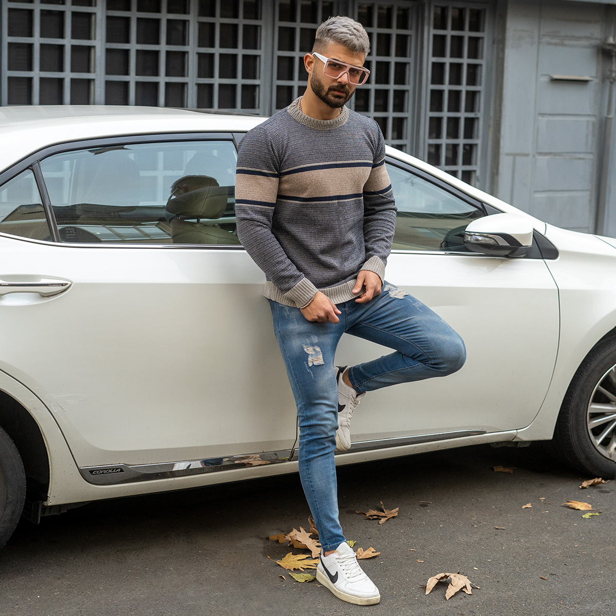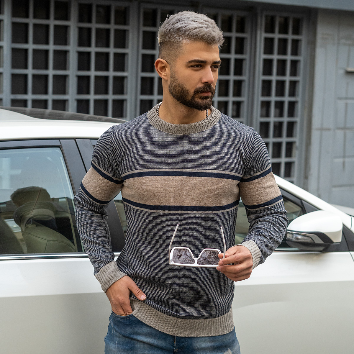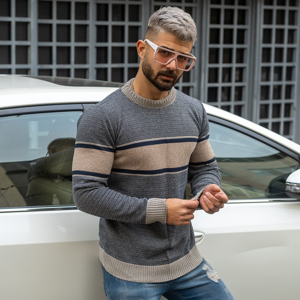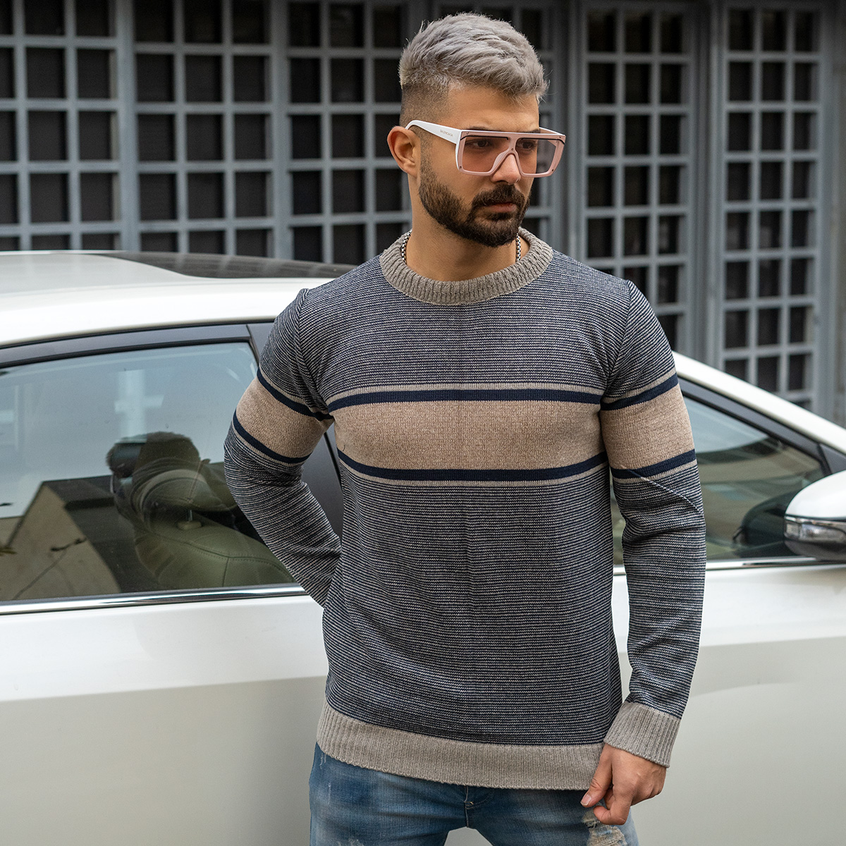 پلیور مردانه کرم- طوسی مدل Madis