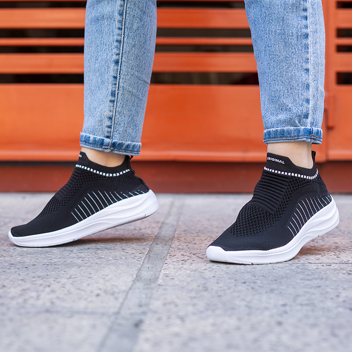 کفش ورزشی زنانه مشکی سفید مدل Line