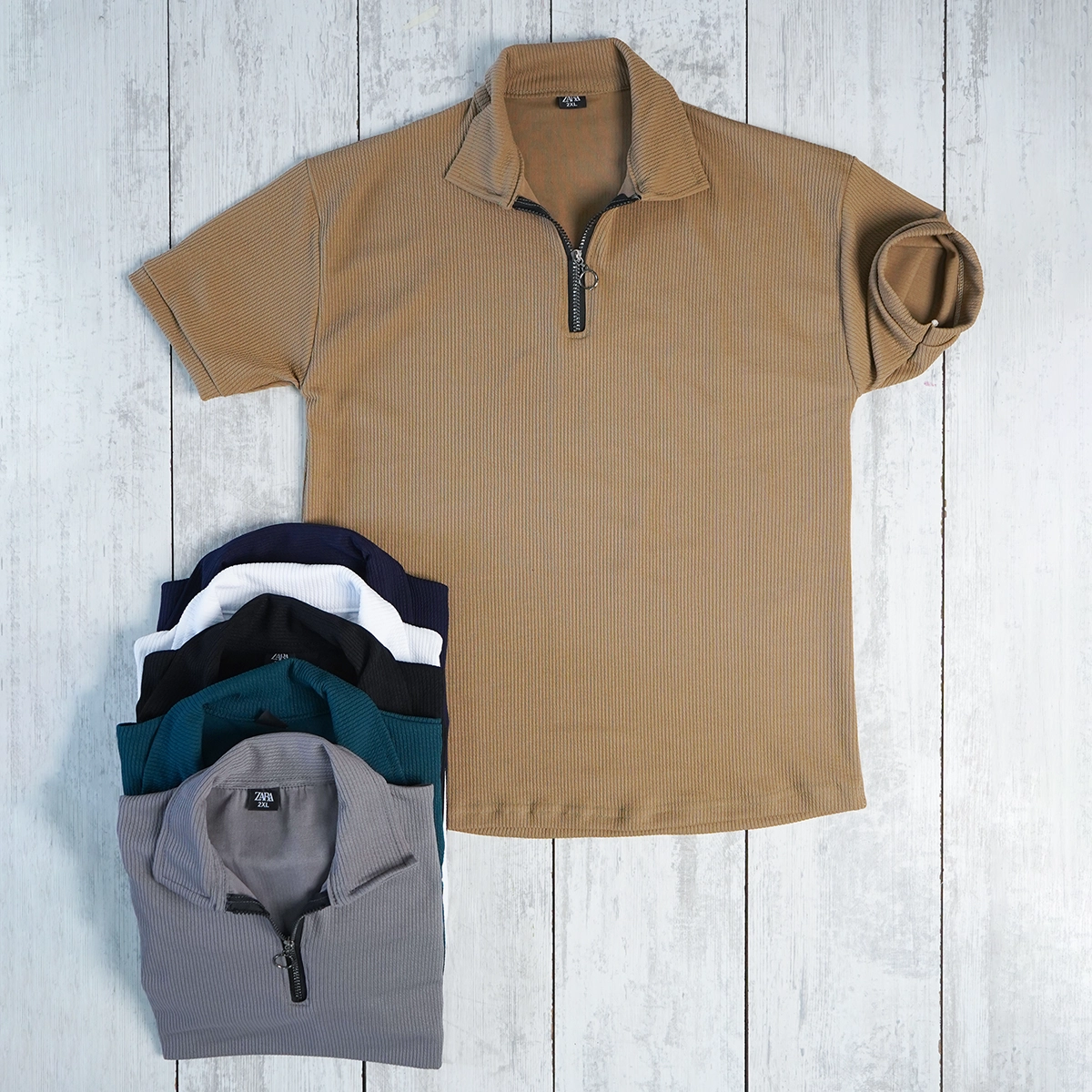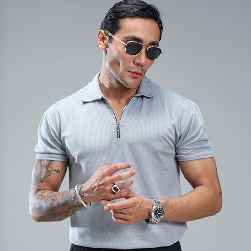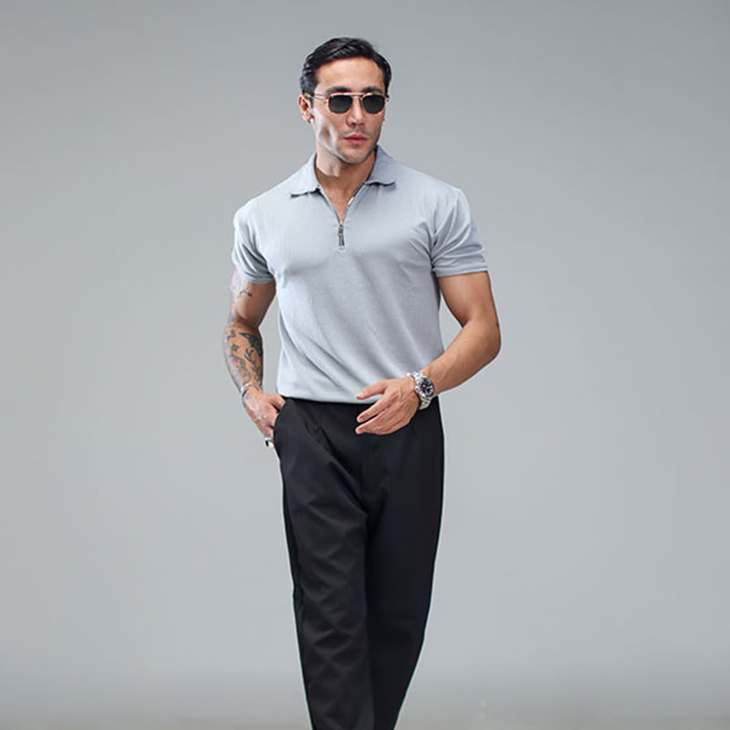 تیشرت مردانه یقه زیپ دار طوسی مدل Arban