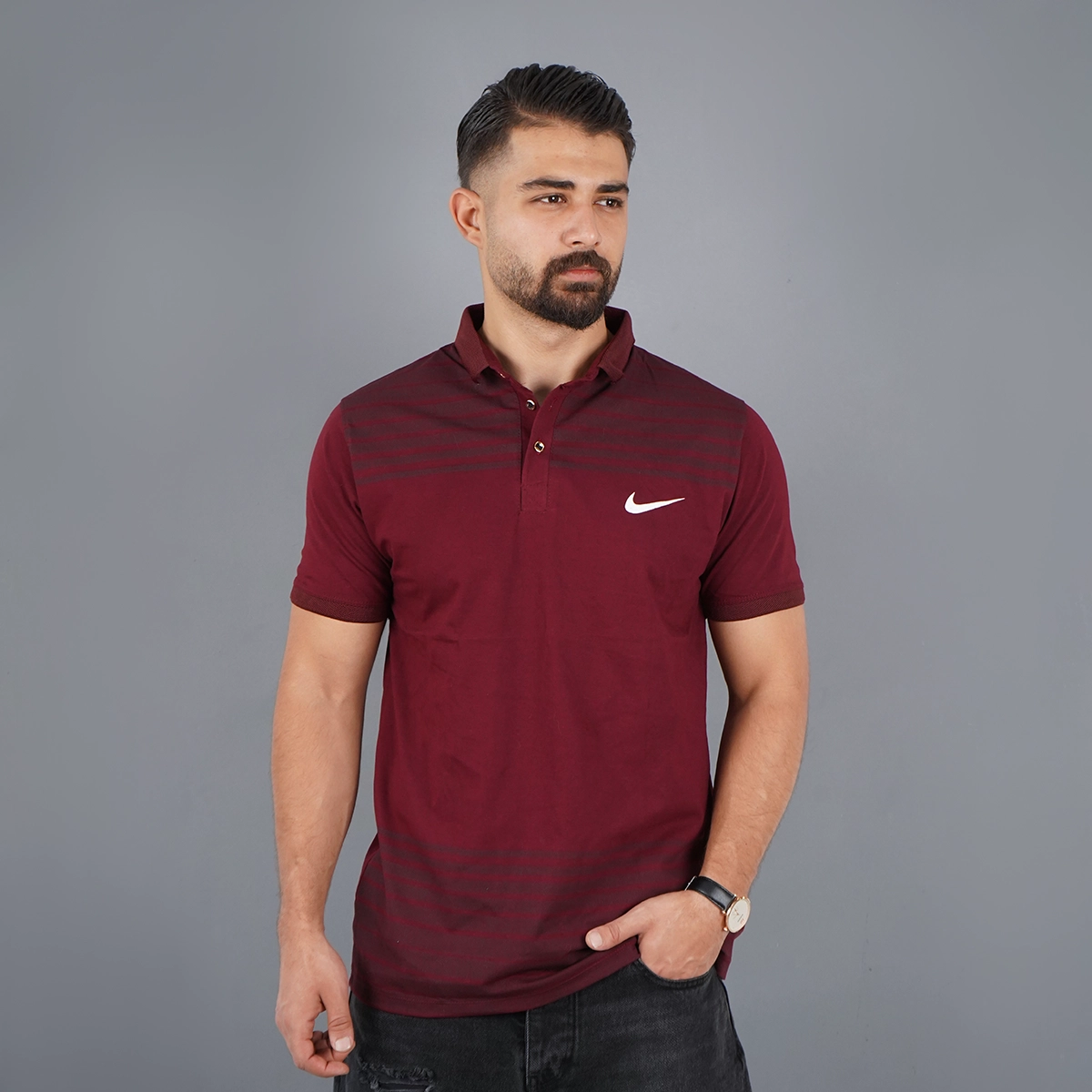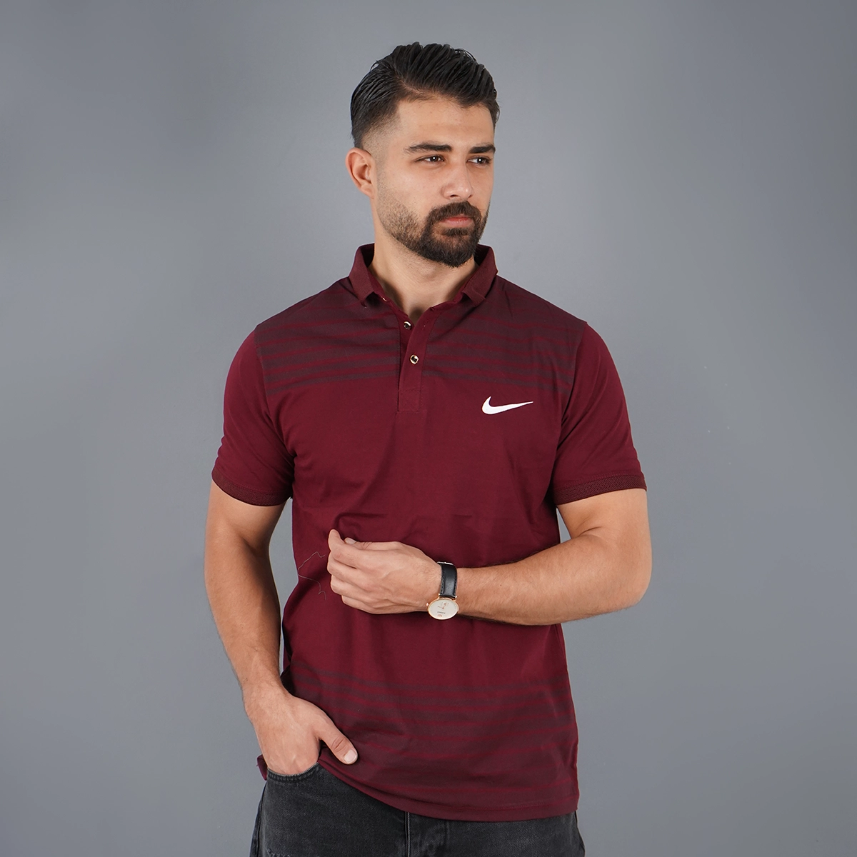 تیشرت یقه دار راه راه زرشکی مدل Farhan