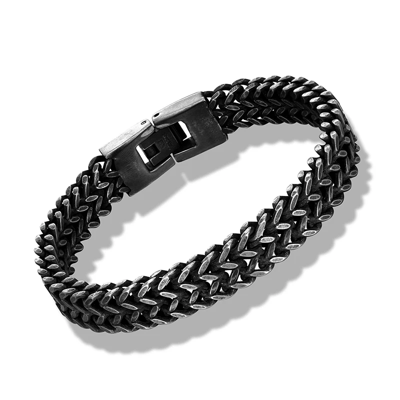 دستبند زنجیری ضخیم مشکی مردانه مدل H23 جنس : استیل طول: حدود 24 سانتیمتر قطر: حدود 10 میلیمتر
